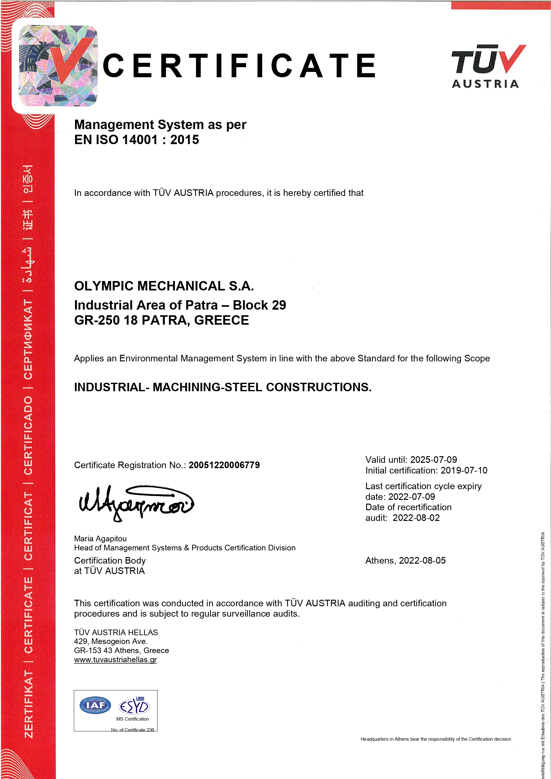 Our company has significant experience and substantial knowledge in the execution of complex turn - key projects all certified by the following certificates: